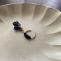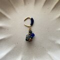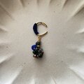 粒々ビーズと藍染め糸のイヤカフ・青系