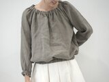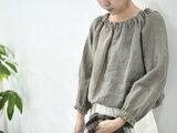 上質リネン100% グレージュ❤︎ゴムブラウジング長袖トップス No.371