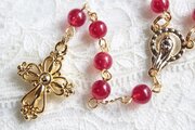 レッドジェイドと呼ばれている天然クォーツァイトを使用したロザリオです。
