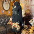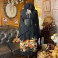 【 和洋折衷 黒留袖 着物 リメイク ワンピース ドレス 洗える 化繊 ハンドメイド レトロ 古着 梅・桜・菊・牡丹など四季花が咲き重なり、花籠や花器の意匠がしっとり雅やか TKW-68】