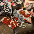 チャーム等、手縫いで縫い付けています。強い力を加えると破損しますので優しく取り扱い下さいませ。