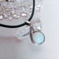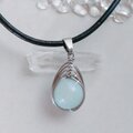 【天然石】アマゾナイトのサージカルステンレス 本革 チョーカー ネックレス ペンダント