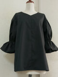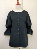 潔いブラックが大人な雰囲気の7分袖ブラウスです。