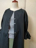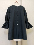 ドロップショルダーから続くふんわりしたお袖はシャーリング仕様で、腕にフィットしつつも、動きに合わせて伸び縮みします。
