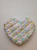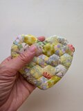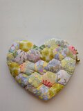 小さいリバティの生地をヘキサゴンで縫い合わせ、ハート型のポーチにしました。
