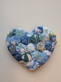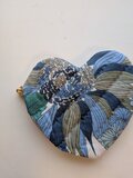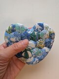 小さいリバティの生地をヘキサゴンで縫い合わせ、ハート型のポーチにしました。