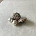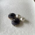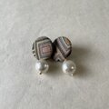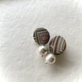 Vintage kimono fabric × vintage paper pearl くるみボタンピアス