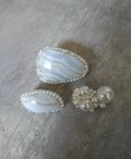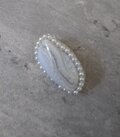 【3点セット】ブルーレースアゲートとパールのピンブローチ
