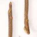 細い方先端は、側面の大きな枝跡から 細くなりながらも上へ伸びる主流の枝、反対側先端は広がり、裏面は割れ跡が見られます。