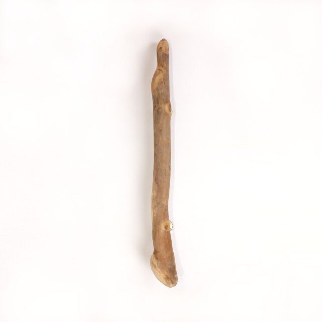 太めの枝流木、少しふくらむ丸く印象的な枝跡、木の節が見られます。