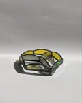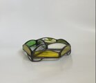 黄色と緑を基調としたガラスをを組み合わせて作ったステンドグラスの小物入れです。