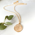 14kgfならではの深みあるゴールドが、胸元にそっと上質さを添えるコインネックレス