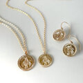 胸元に寄り添う程よいサイズ感のメダイと、選び抜いた軽やかなチェーンの煌めきが響き合い、装いにやわらかな余韻を添えます。