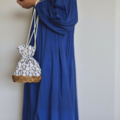 底の部分がラタン(籐)のお皿になっている巾着です。