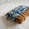 ラタンのサコッシュ【青い花】 手作りの籐籠/自然素材の手編みカゴバッグ/大人カジュアル/お散歩バッグ