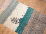 北西アフガニスタン、ガズニー州の山岳地帯に生育する羊の、年に1回のみの刈り入れによる、長くしっとりふくよかな羊毛を使った手織り絨毯。ウールでありながら、シルクのような光沢感、つややかさもあります。