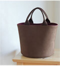 作品が到着いたしました。 優しいラテグレージュ色と細いレザーハンドルが、とても上品でフェミニンな印象の素敵なバッグですね。 季節を問わず活躍してくれる事間違いありません。ありがとうございました。