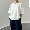 このTシャツは、表面にさりげない凹凸感のあるリップル生地を贅沢に二重仕立てにしたダブルフェイス生地を使用しています。
