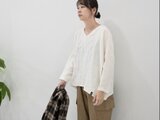 程よい緩やかなVネックでお顔をほっそり見せてくれる効果。