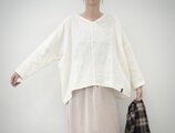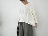 ベルギーリネンのゆったりトップス長袖 オフホワイト No.370
