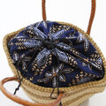 鮮やかな色彩のアフリカ布、ナチュラルなカゴバッグとの相性は抜群です。