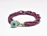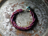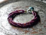 葡萄色アンティークワイトハーツの4連ブレス(ターコイズ留め金)