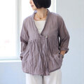 クリンクルコットンギャザーブラウスカーディガン【モーヴ】