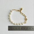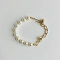 ガラスパールとチェーンのブレスレット/約8mm約20cm/クリーム/G/made in japan