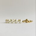 こちらはガラス素材の原玉に、オリジナルパール塗料にて何層にも渡り重ね塗りを施した日本製貝パールのブレスレットになります。パールカラーはきめ細かい質感と程良い艶感が特徴のクリーム色。オーソドックスでお使いいただきやすい色合いで仕上げました。パール間には未使用ビンテージのヒロシマビーズ/グラスビーズを使用。パールサイズは直径約8mm、長さは金具含む全長約20cmで仕上げています。パール部分は約12cmほどでチェーン部分は約8cm程。お好みのところで留めていただけます。
