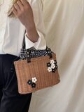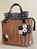 【1点在庫あり】手編みの籐かごバッグ/Megg Bag panier/ギンガムフラワー /かごバッグ