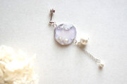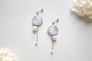 レジンアート スライスアゲートとコットンパールのピアス〈この世の彼方〉