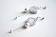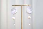 大小二粒のコットンパールを吊るして、高級感に可憐さを添えたアクセサリーに仕上げました。