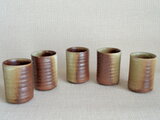 この作品は、信楽の土を使いろくろで丁寧に作った湯のみに独自に調合した釉を薄くかけています。その釉が土とよくなじみ高温焼成で流れ、味わい深い色と模様に仕上がっています。