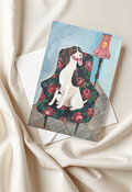 (42)薔薇のソファーと青い目の犬 ポストカード 3枚セット
