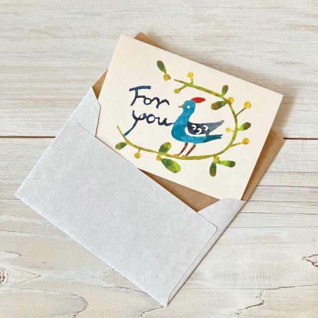 封筒付きミニカード「ヤドリギと小鳥」・型染め