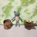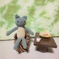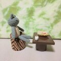 あみぐるみ猫さんとソファー・テーブル・おやつとコーヒーのセットです。
