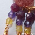 ピンクトルマリン、アメジスト、イエローカラーカルセドニーを一本のワイヤーに通し、オレンジカラーのジルコンを下げました