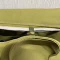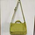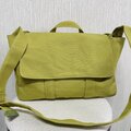 岡山倉敷製の11号帆布で作ったフタ付きショルダーバッグ、トートバッグです。ウグイス色という感じで、くすんだライトグリーンです。