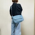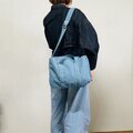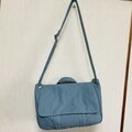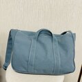 岡山倉敷製の11号帆布で作ったフタ付きショルダーバッグ、トートバッグです。くすんだライトブルーです。