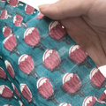 インド ブロックプリント生地 [50cm単位切売] Sanganeri ピンクのツボミ on ブルー地 花 IF0340