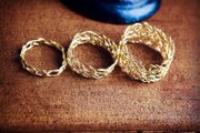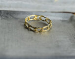 かぎ針手編みの鎖編みリング。編み目の繊細な輝きが特徴の編みリングです。k14gf(ゴールドフィルド)ワイヤーの二重編み。質感の良い落ち着いたオレンジ寄りのゴールド。