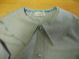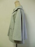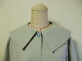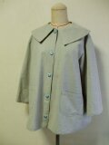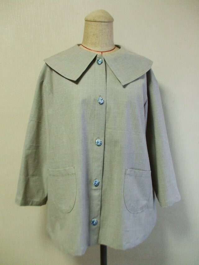グレーベージュ色×くるみボタン&衿ぐりテープにリバティタナローンの生地を仕様しました、大きな衿のジャケットです♪ストレッチが入った中肉素材の生地です♪シャツコート、春コート、秋コートとして着用して下さい♪真冬の防寒着としては不向きです