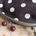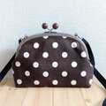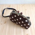 長財布も入る大きめサイズ ドット帆布のがま口ショルダーバッグ 25cm口金 ブラウン 362