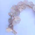 透かし加工を施した花びらで構成されたクラシカルな雰囲気とトレンド感を纏うヘッドドレス。