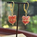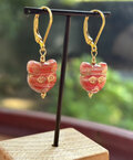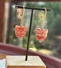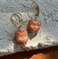 愛らしい猫ちゃんフェイスにカットされた、チェコガラスのフレンチフックピアス