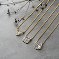 ダイヤモンドカットの縁取りがアクセントとなり、無垢のゴールドに劣らない上質な輝きは首元に高級感と洗練された印象をもたらします。