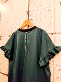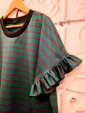 グリーン&ブラウンボーダー袖プチフリルワンピース