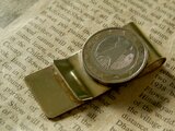 ドイツの1€コインを真鍮製のマネークリップに装飾した作品です。