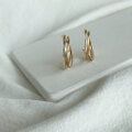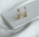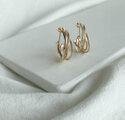 斜めのラインが重なりあった3連の小ぶりなフープピアス。