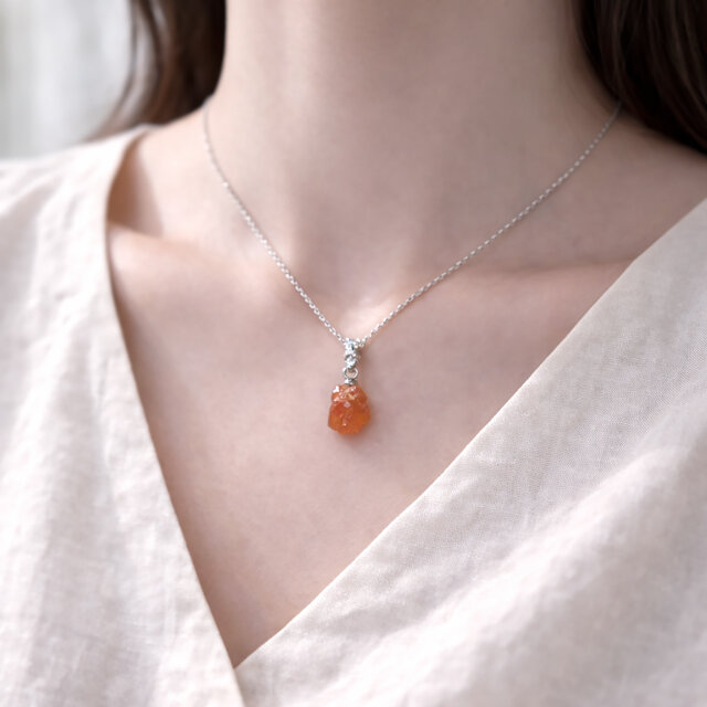 ■素材:タンザニア産/スペサルティンガーネット原石・シルバー925(プラチナコーティング)
